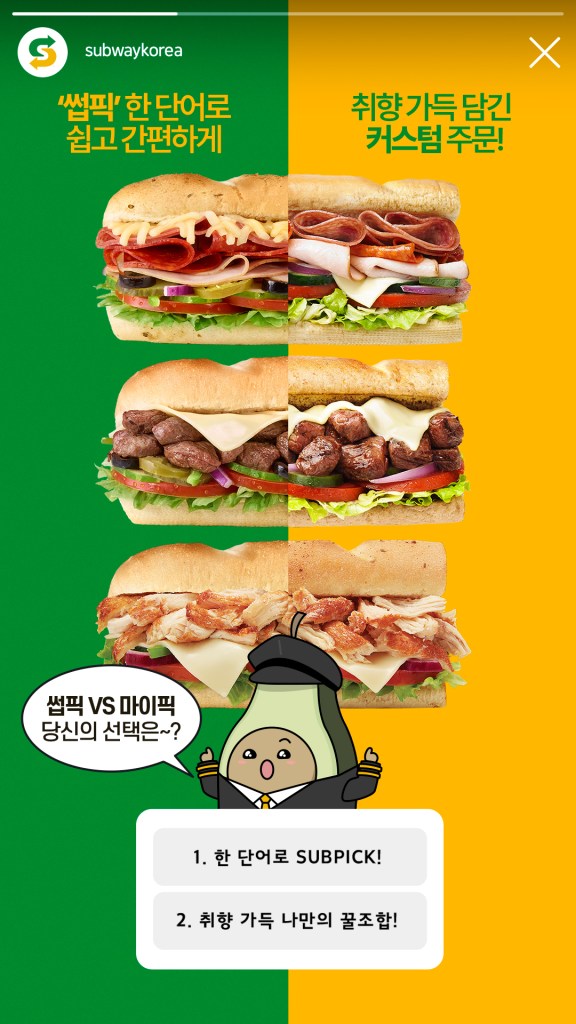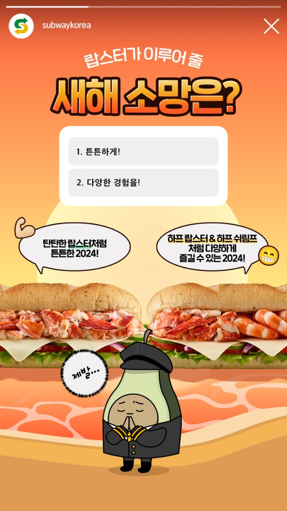 This project involved Graphic Design and Illustration for Subway Korea, which I undertook while working as a Graphic Designer in Seoul. The objective was to create engaging Instagram content to enhance the brand’s social media presence. I designed visually appealing posts to introduce new menu items and highlight various events, aiming to attract and retain followers, and ultimately drive customer engagement and sales. Through a combination of creative visuals and strategic messaging, the campaign successfully promoted Subway Korea’s offerings on Instagram.